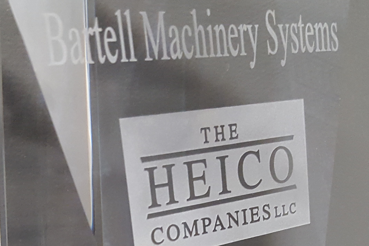 Rome, NY – Bartell Machinery Systems has the extreme pleasure of announcing that it has been awarded The HEICO CompaniesInnovation Award.”  This prestigious award recognizes a business’s efforts to realize innovation through a commitment to product development and a culture where innovation is engrained in the fabric of the business at all levels.