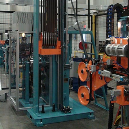 - Let-Off equipment can contain up to twenty-four (24) Heavy Duty Let-Off Stands complete with a wire break proximity switch and low wire sensors. A multi-station gathering rail and guide roll stand properly align the wires prior to entering the extruder.